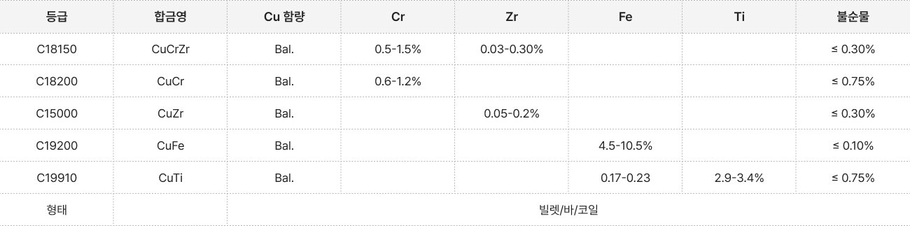 구리 합금은 구리(Cu)를 기본으로 하여 다양한 금속 원소(예: Zn, Sn, Ni, Cr, Zr 등)를 첨가하여 만든 롤 형태의 판재/박판으로, 우수한 전기적·열적 특성, 내식성, 가공성 및 기계적 강도를 제공하여 전기전자, 자동차, 통신, 산업 기계 등 다양한 분야에 폭넓게 사용됩니다.