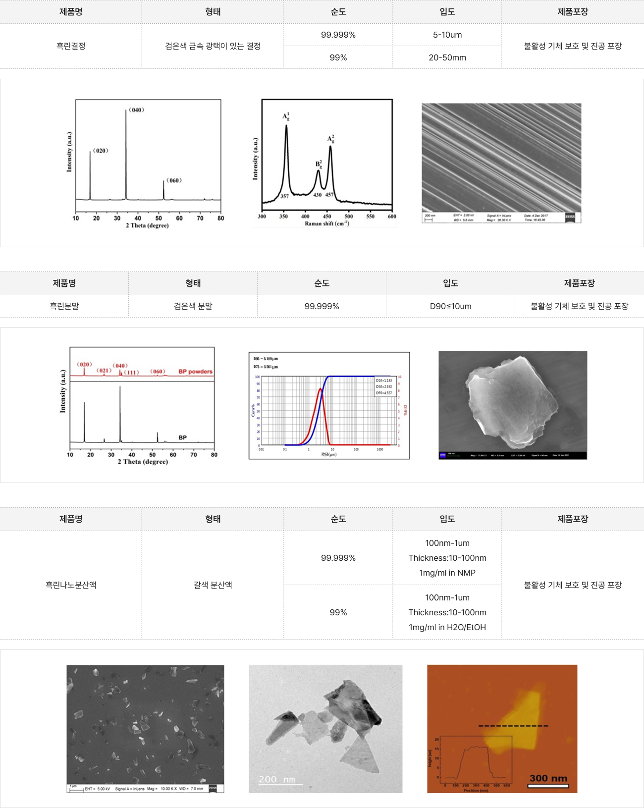 흑린(Black Phosphorus, BP)은 인(phosphorus)의 동소체 중 하나로, 층상 구조를 가진 준2차원(2D) 반도체 물질입니다. 최근에는 에너지 저장 소재, 광전자 소자, 바이오센서, 촉매 등 다양한 분야에서 차세대 소재로 주목받고 있습니다.
