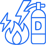 - 금속분말 화재에는 일반 물 소화기 금지 → Class D 소화기 (건식 분말 소화제 등) 사용